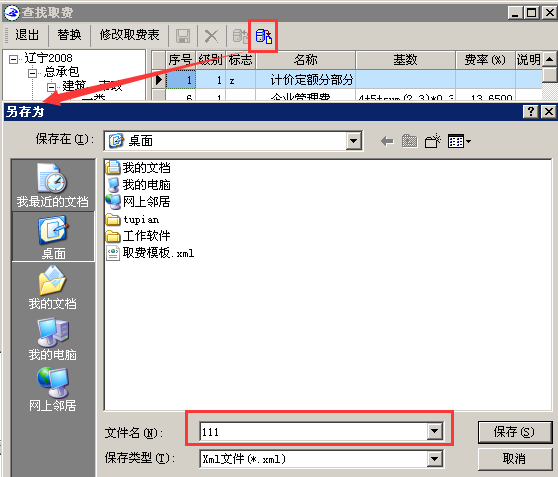 选择【修改取费表】,点击【导出】,导出到固定的位置取好名